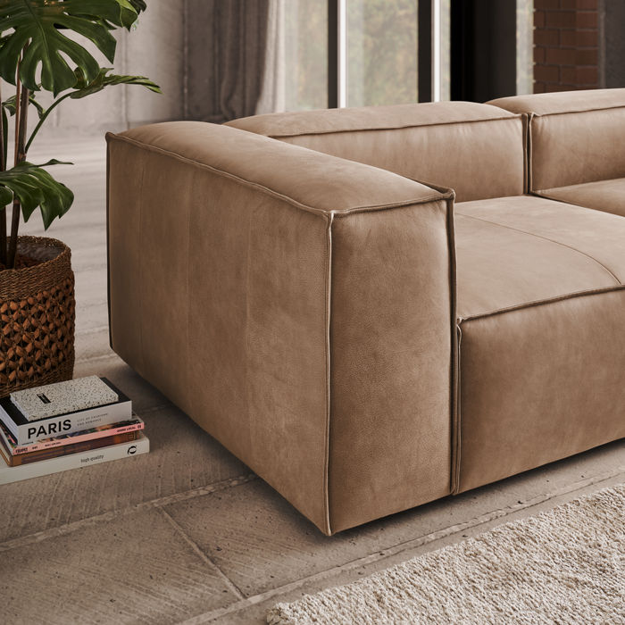 Mit seinem klaren, kubischen Charakter fügt sich das Watertown nahtlos in jede Einrichtung ein und verleiht dem Raum eine elegante Note. Das markante Design mit der umlaufenden Biese setzt einen besonderen Akzent und macht das Sofa zu einem echten Blickfang. Komfort und zeitlose Ästhetik – perfekt für entspannte Abende oder gesellige Runden mit Freunden.